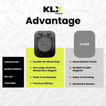 The KLX Magnetic Tool Holder offers a distinct advantage over standard storage methods. It is built using industrial-grade N52 Neodymium magnets, guaranteeing ultimate tool security even when subjected to intense workplace vibrations and jolts. The construction features tool-grade aluminum and a resilient rubberized grip, making it dust-proof, damage-resistant, and engineered for a lifetime of heavy-duty use. We stand firmly behind the superior quality and effectiveness of our product, offering a Lifetime Warranty on every KLX Magnetic Tool Holder. Choose KLX Tools to streamline your workshop and experience the difference true organization makes.